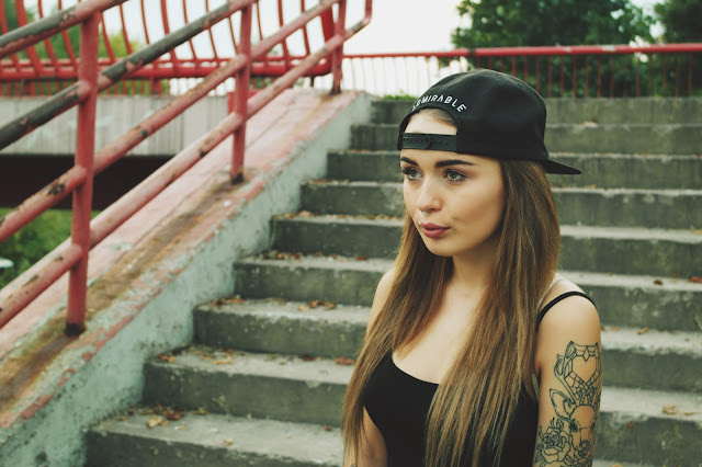 Przez te upały nie czuje się ostatnio za dobrze i przez to nie mam ochoty nic robić. Praktycznie do wszystkiego muszę się zmuszać, począwszy od wstania z łóżka. To niedobrze... To bardzo niedobrze, bo kończy mi się powoli urlop i nie będzie zmiłuj. Dzisiaj, mimo apogeum mojego złego samopoczucia, wzięłam się w garść i zabrałam ze sobą aparat. I tak o to wygląda mój zwyczajny/codzienny "look". Czarna sukienka, kupiona w h&m (jak praktycznie każda z sukienek w mojej szafie). Snapback mojego faceta (no ale "co moje to i Twoje" w naszym związku) :) i stare dobre vansy (tak, stareee). Nie obeszło by się też bez woodstockowego worka (nazmiennie z bawełnianą torbą). bo nie wyobrażam sobie w ten upał targać niczego ciężkiego, sztucznego, albo skórzanego.